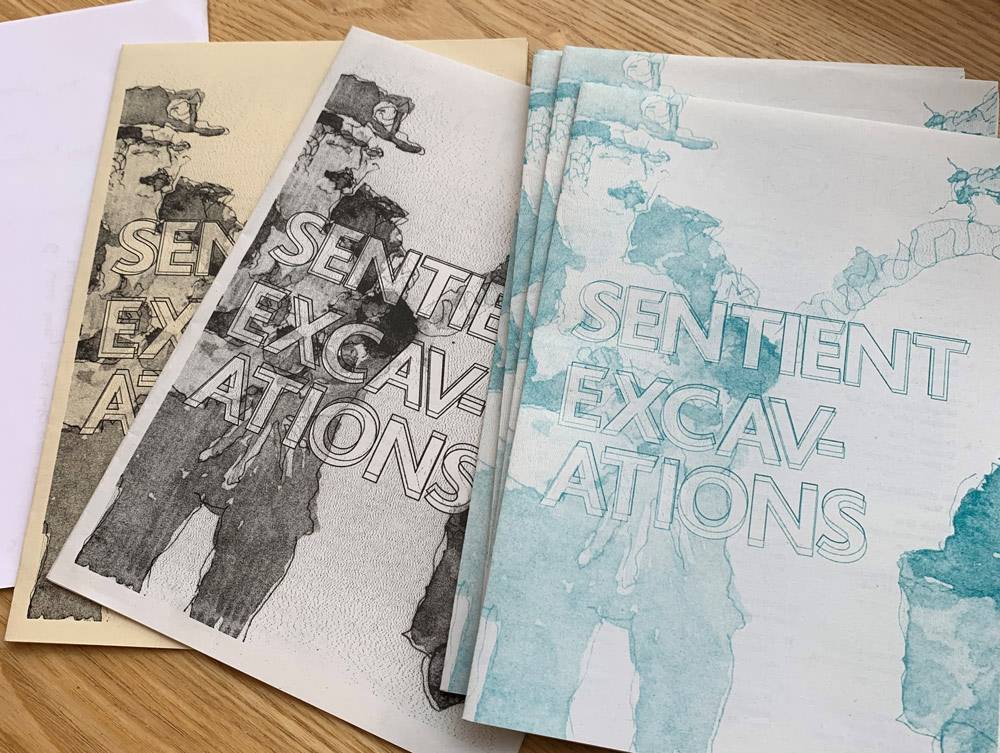 After months of hard work and going back and forth – from our graphic designer to the printers, and back – our exhibition catalogue for Sentient Excavations is finally where it is intended to be – in the office, accompanying the artworks of Juliet Scott and Simone Kennedy. It completes their exhibition, giving context to how it came about, and how the Institute arrived at where we are now – weaving together art and social science.