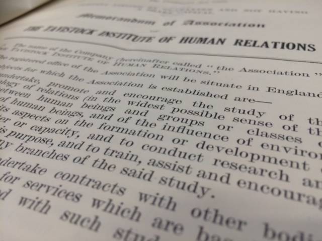 The Tavistock Institute of Human Relations was born out of the Tavistock Clinic, with a departure in methodology and research focus which saw the pioneering application of psychoanalytic and open systems concepts to group and organisational life and relations. As the Institute celebrates its 70th anniversary, the archives of both the Clinic and the Institute are undergoing major projects to catalogue and release historical records for research.